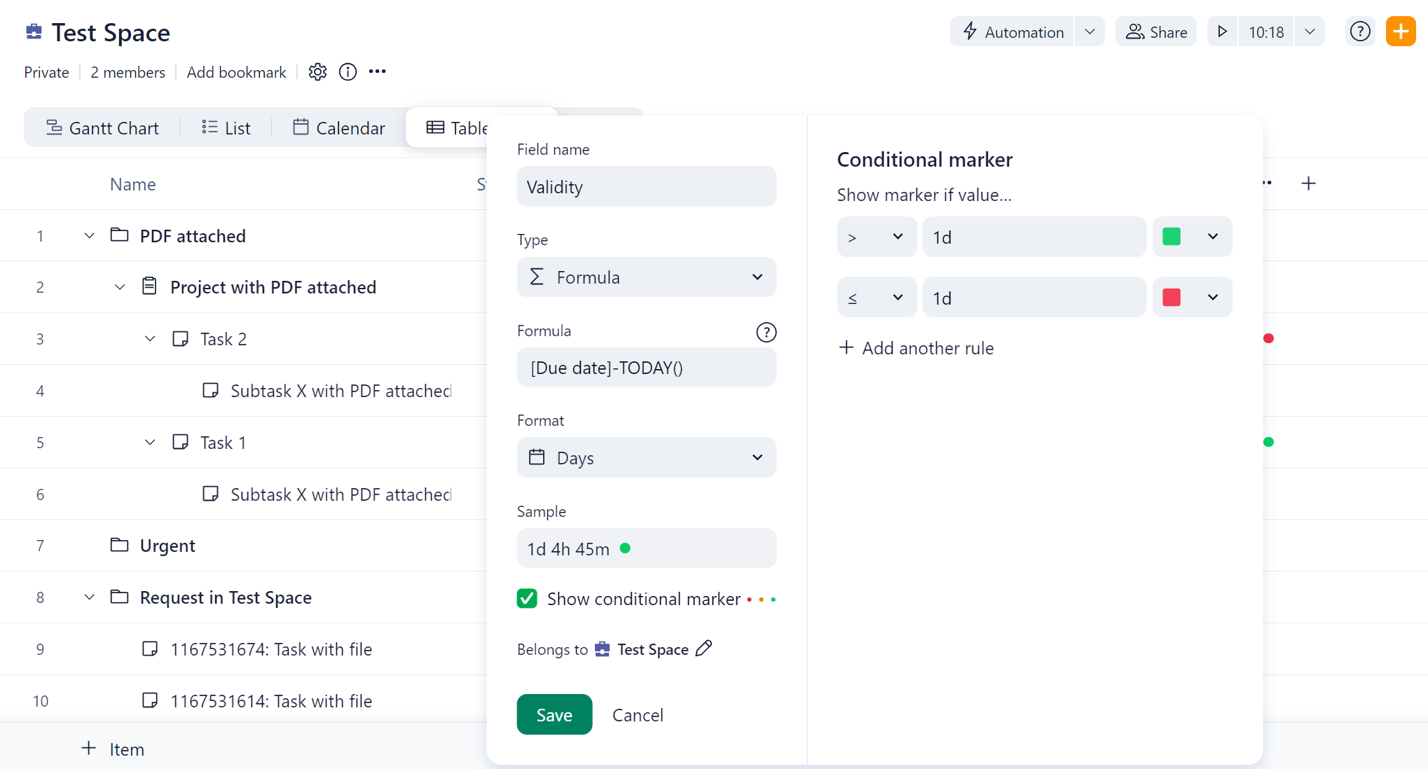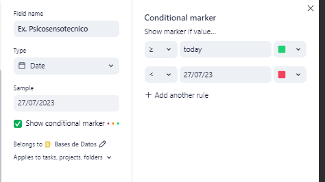 we use plenty of custom field regarding the validity of a certain document or license. in this case, we would like to have a conditional marker that contrast that date with today. This can be really helpfull to know when a certain document is not valid anymore.