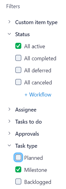 Here's the dashboard filter for milestones. It's under Task Type.