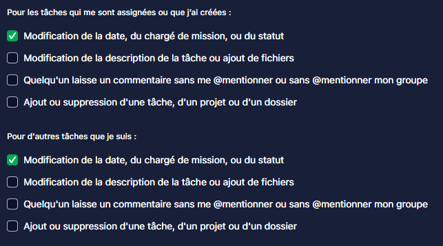 I changed my settings and choose to receive notification when the status is changed on the task I'm assign to and I don't receive anything, I only get the one from mentionning and attributing.
