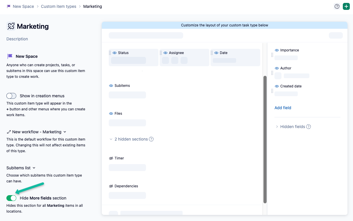 - We have item types to represent sub-projects (e.g. Epic, Work Package, Phase, etc.). There are custom fields like Customer, Strategic Goal, etc. that we'd like to apply only to our top-level project item types but not the sub-project types to reduce inadvertent filling by engineers.