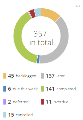 I tried building a dashboard from components (most of them are there) but can't find a way on including the pie chart showing a summary of tasks active, closed etc.