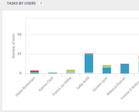 It's the following graphs I'm keen to include in the dashboard and so far I've only managed to include 'tasks by users':