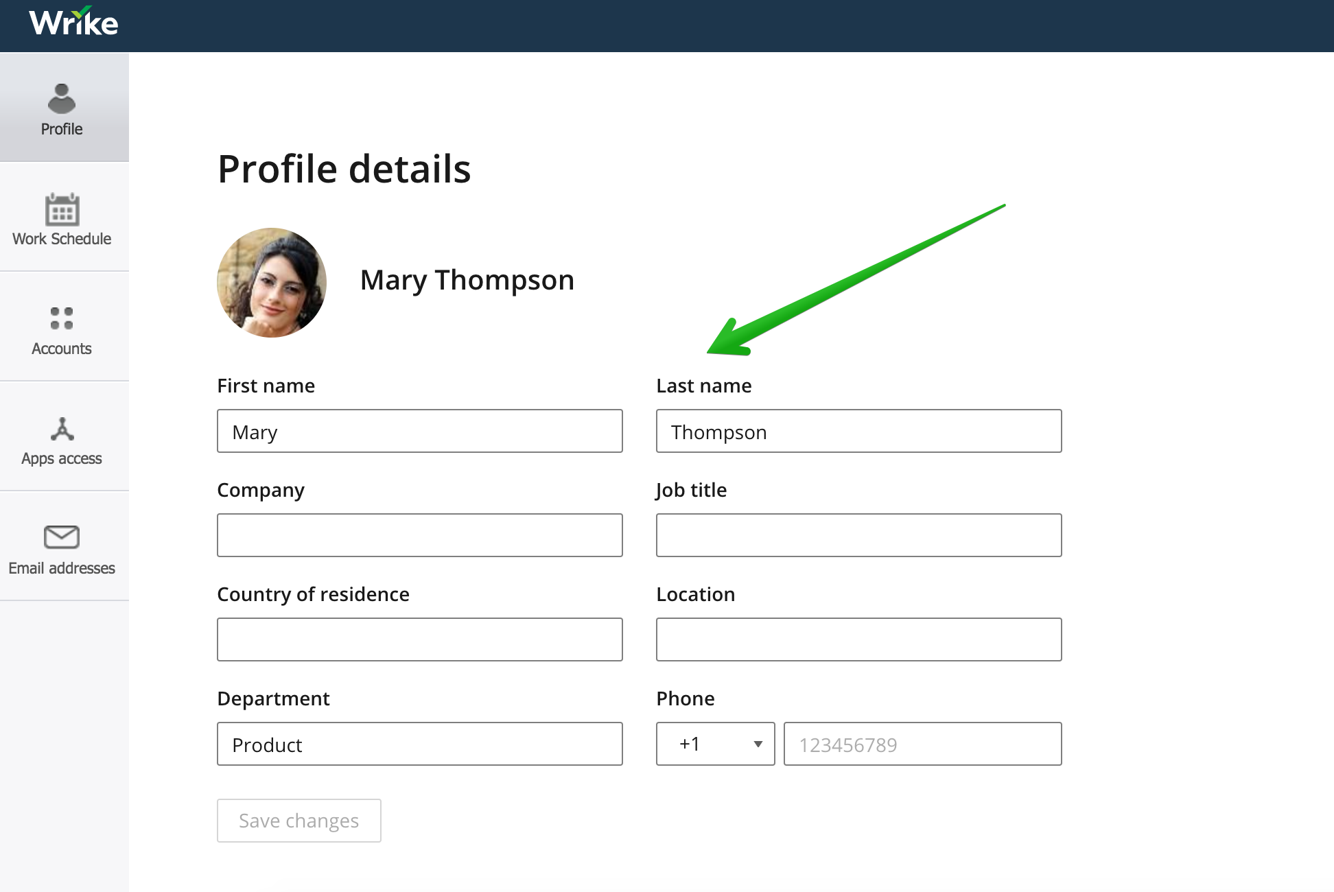 We have had a name change for one of our Users. How can I change that in Wrike?
