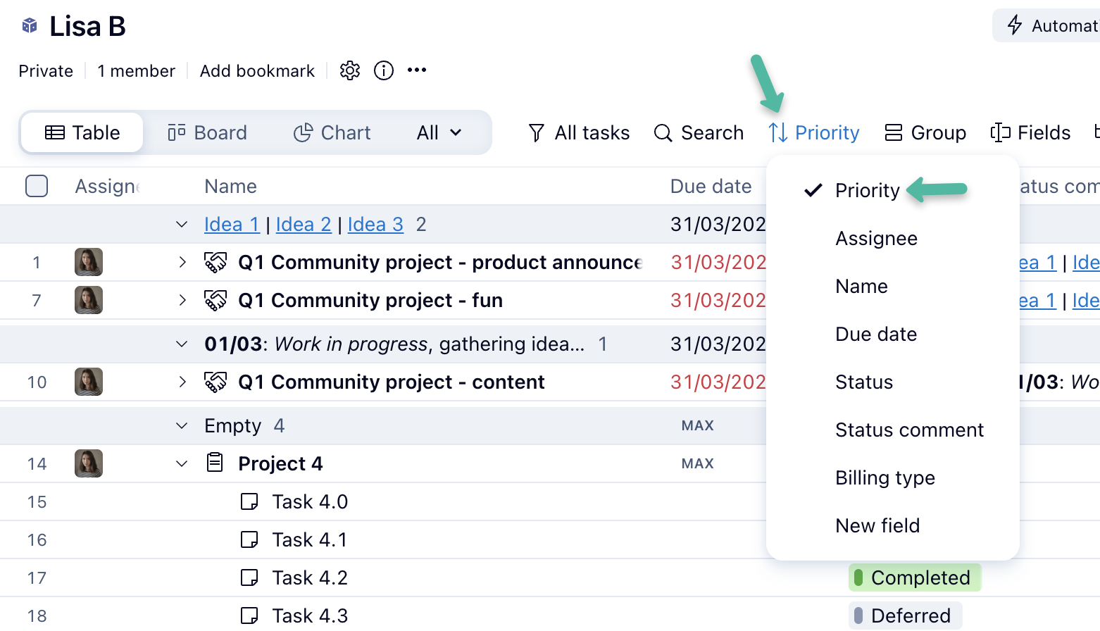 Hey Natik Alaskarzda, it's also possible to choose sorting by "Priority" in the Table view and manually drag and drop tasks - the order will be saved for when this sorting is used: