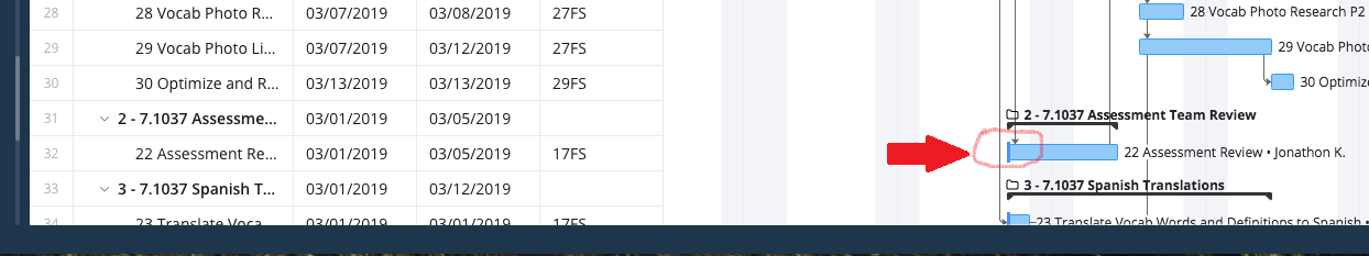 Sometimes these blue bars show up randomly in the Gantt Chart not connected to any one task but to the left on an earlier date.
