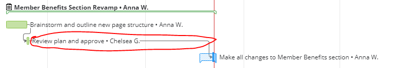 Interesting and may be somewhat related, however, some of the tasks I see that have these bars do not have a predecessor, while others have one that is on the same start date (and configured as such). Sometimes I see these bars all by themselves, not attached to a task, but on the same line as a task. In this particular case, we have 3 discrete tasks that need to align on a start date based on a four task's start date, but the three tasks are not connected (FS or SF or SS) in Wrike with the fourth or each other.