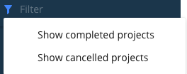 Uncheck both "Show completed projects" and the complete projects should be removed from the left-hand column.