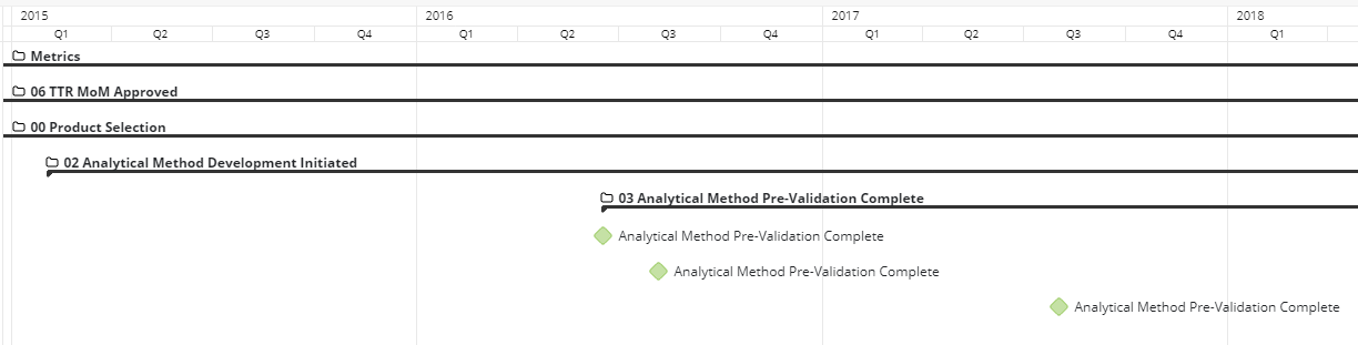 Drax, thanks for getting back to me 🙂 As you have so many projects to track on a single Gantt Chart, the only thing that comes to me is to add the Project's title to the Milestone's, for example: "Analytical Method Pre-Validation Complete (Project X)". I understand it's not perfect and pretty manual. Please let me know if you'd like me to raise a Support ticket for you - the team might be able to suggest a different and also a more useful solution 👍