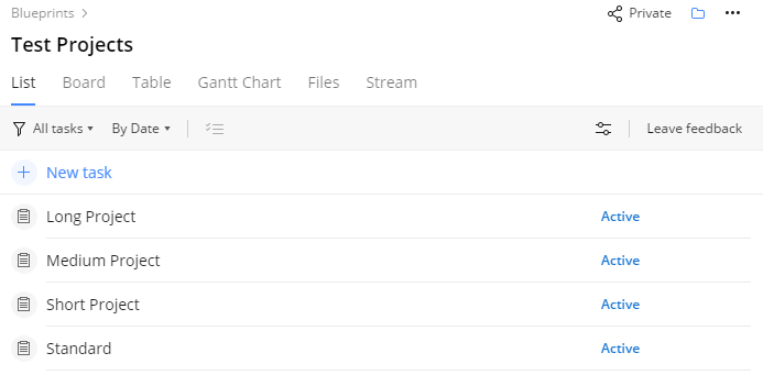 We currently have multiple blueprints that have different duration and tasks based on the type of project we are working on.