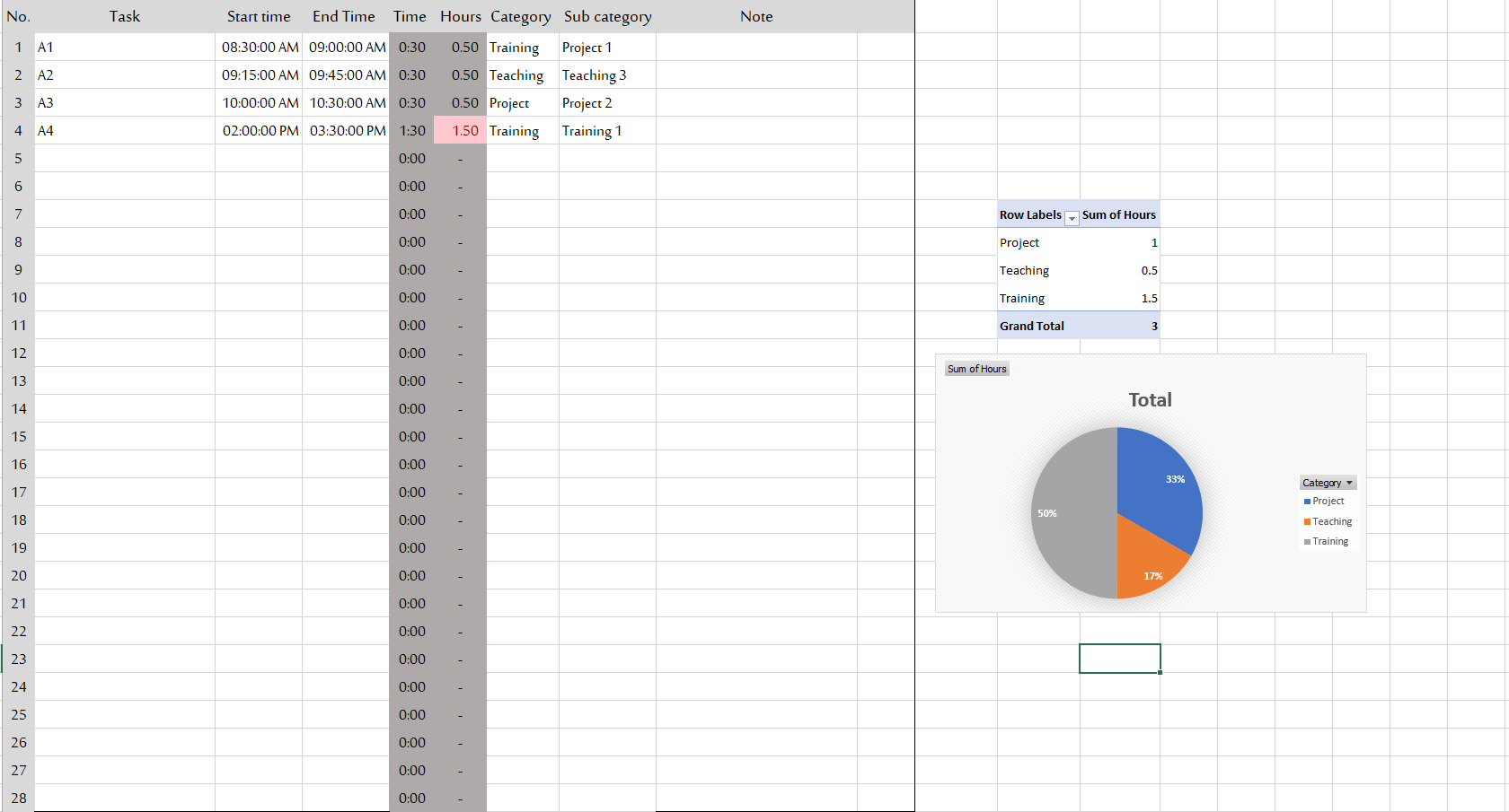This Daily Activity Tracker Should have time tracker for each activities like how long it took to make task etc. Also this task should have some predefined categories like Projects, Training,Management Work etc. with some predefined categories also.