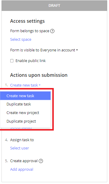 You have four options when creating your request form.