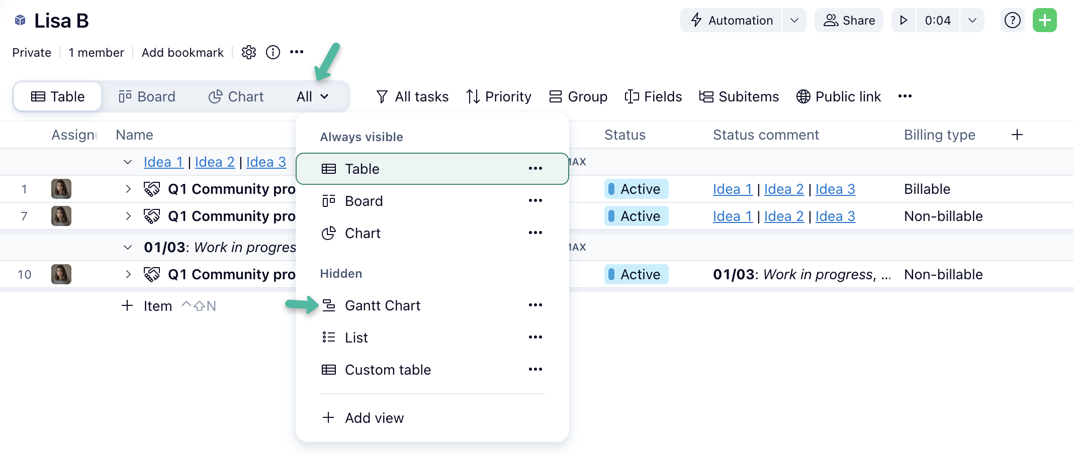 I can't see Gannt chart view.
