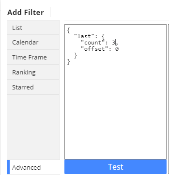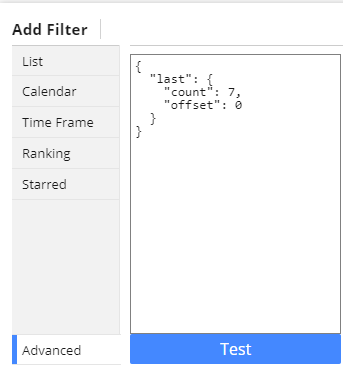 7. Once the selections from step 6 are made, click "Advanced". Update "count":7; to "count": 3; to show only the tasks whose due date was 0-3 days ago.