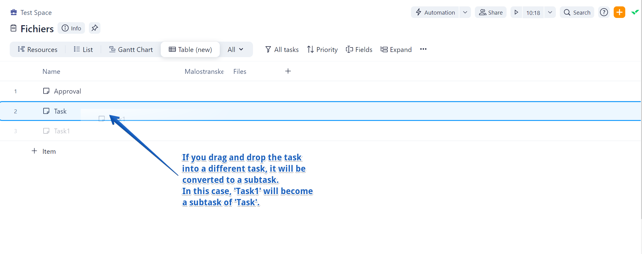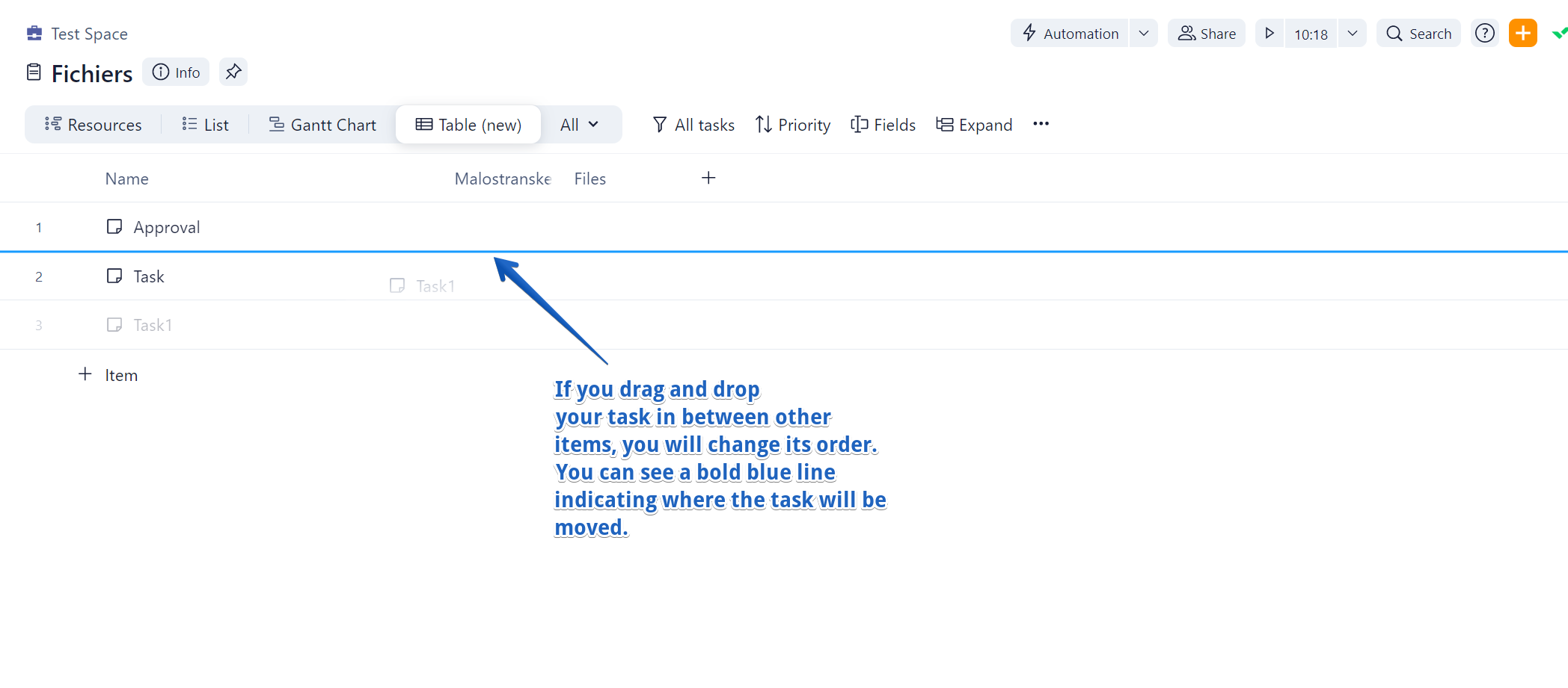 Tasks: Change order of a new task in list view