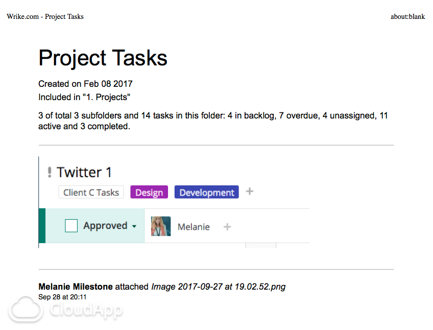 We are creating briefings and reports within Wrike which require printed hardcopy handouts to some people. We need to make share certain tasks to external people "on the field" who don't have online access for their jobs.