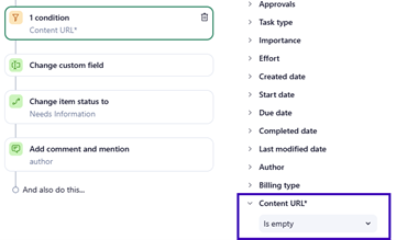 In this example, I’m looking for a trigger when ‘Content URL*’ is empty.