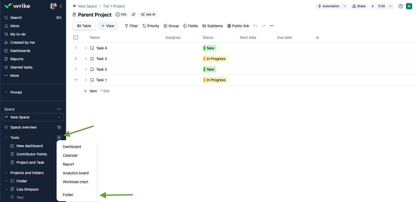 I'm so happy to have this feature. For those who struggle using drag and drop: Create the folder, reload WRIKE, try drag n drop. It does not work directly after creating the folder and there is no way to tag a report into the folder.ย