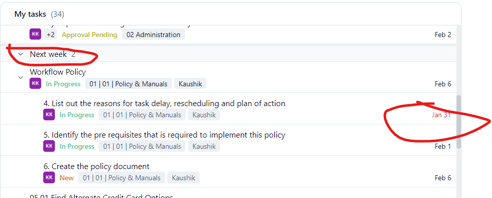 The widget is the My Tasks widget with no option to customize and taken as on 1st Feb 2024