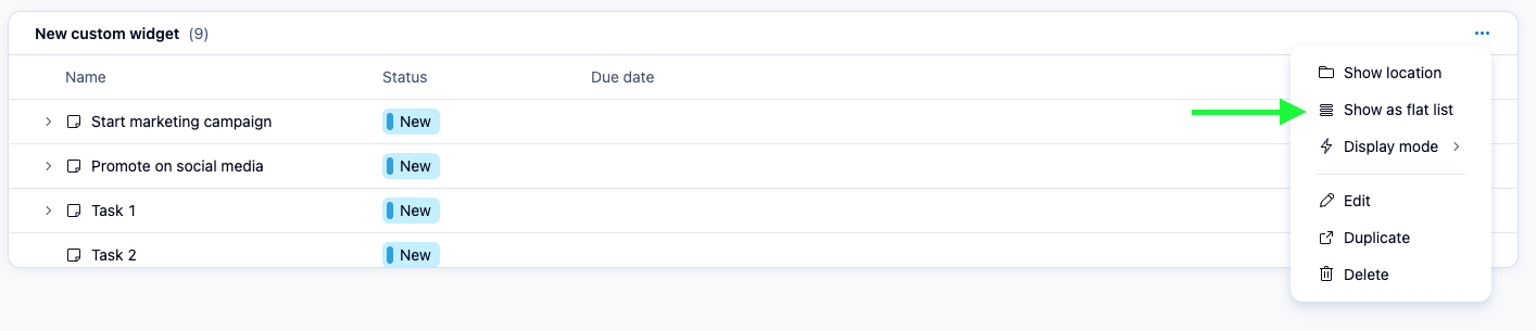 Hi Amie Cotton ๐ Have you tried using the "Show as flat list" option? With this feature, you can view all tasks and subtasks within a widget. Iโm attaching a screenshot below for your reference. Hopefully, this serves as a helpful workaround for your use case.ย