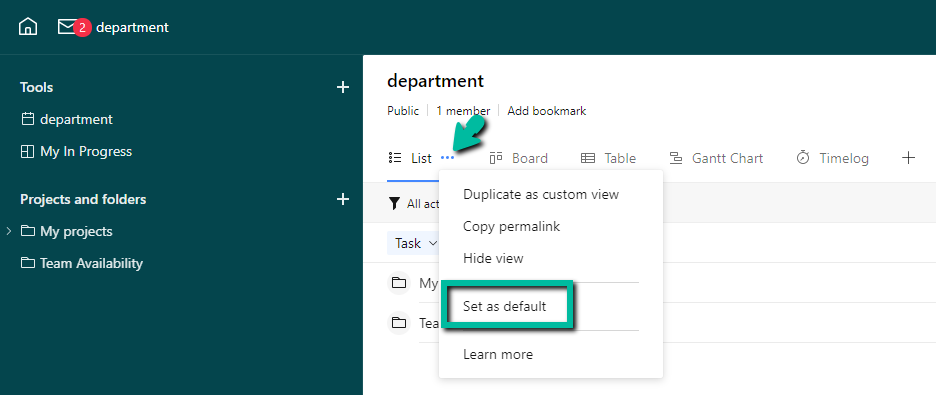 Also, if your projects used to come up in the List view before, it might be that your colleagues changed the default view by clicking on the three-dot menu button > "Set as default".