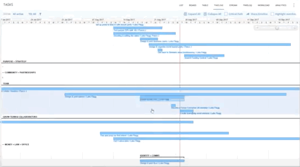 For anyone else that doesn't have access to listen to the YouTube clip: Luke has pointed out that in Timeline View, when you zoom in on tasks, or if a task is very long, it's title is often not visible. I've made a GIF from his video below to illustrate this. Luke's suggestion is to keep all task titles visible regardless of its length or how far you're zoomed in. If you agree with this change please make sure to vote on his post!