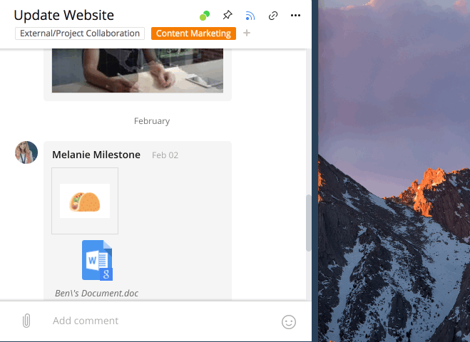 It would be great if you could drag files from Wrike to your desktop/files folder/email.