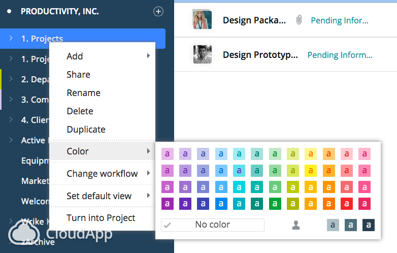 I have created a folder for each of my products, but now when I go to Timeline and look at 'My Work' I see a huge mess of bars, with no separation. A simple fix would be to apply a 'color' to a folder, and everything within it matches a color. Same rules applicable to tags when they are a feature.