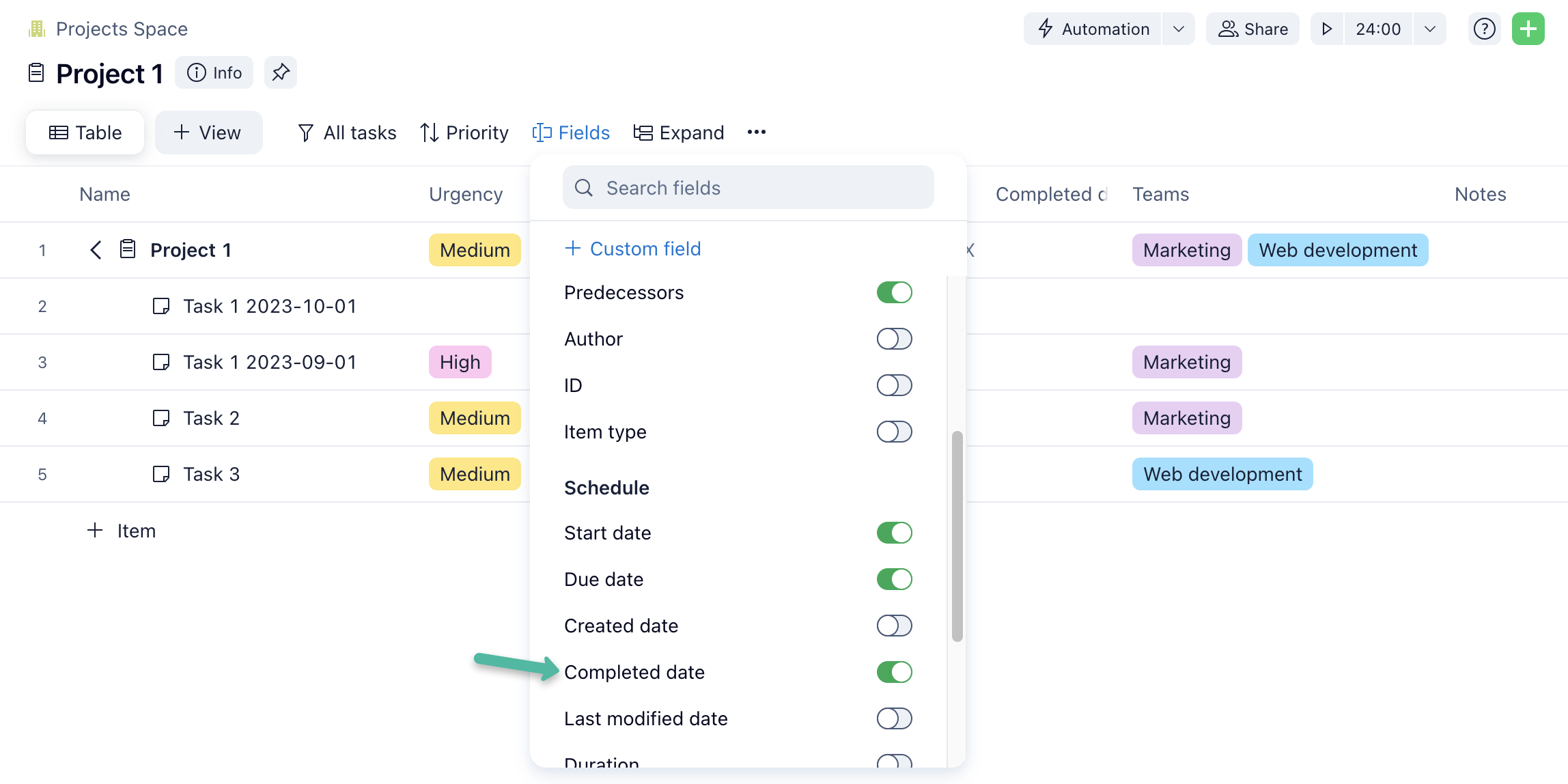 Hey Jeanine Lore! The "Completed date" field can be enabled in the New Table view: