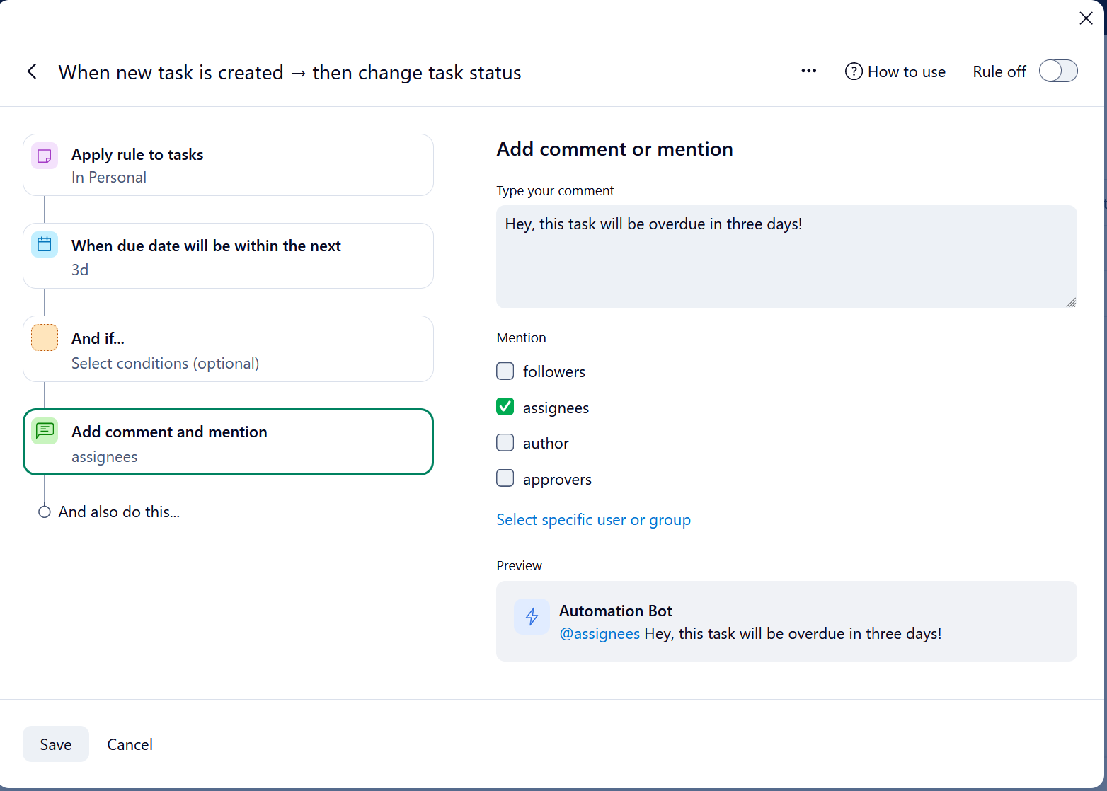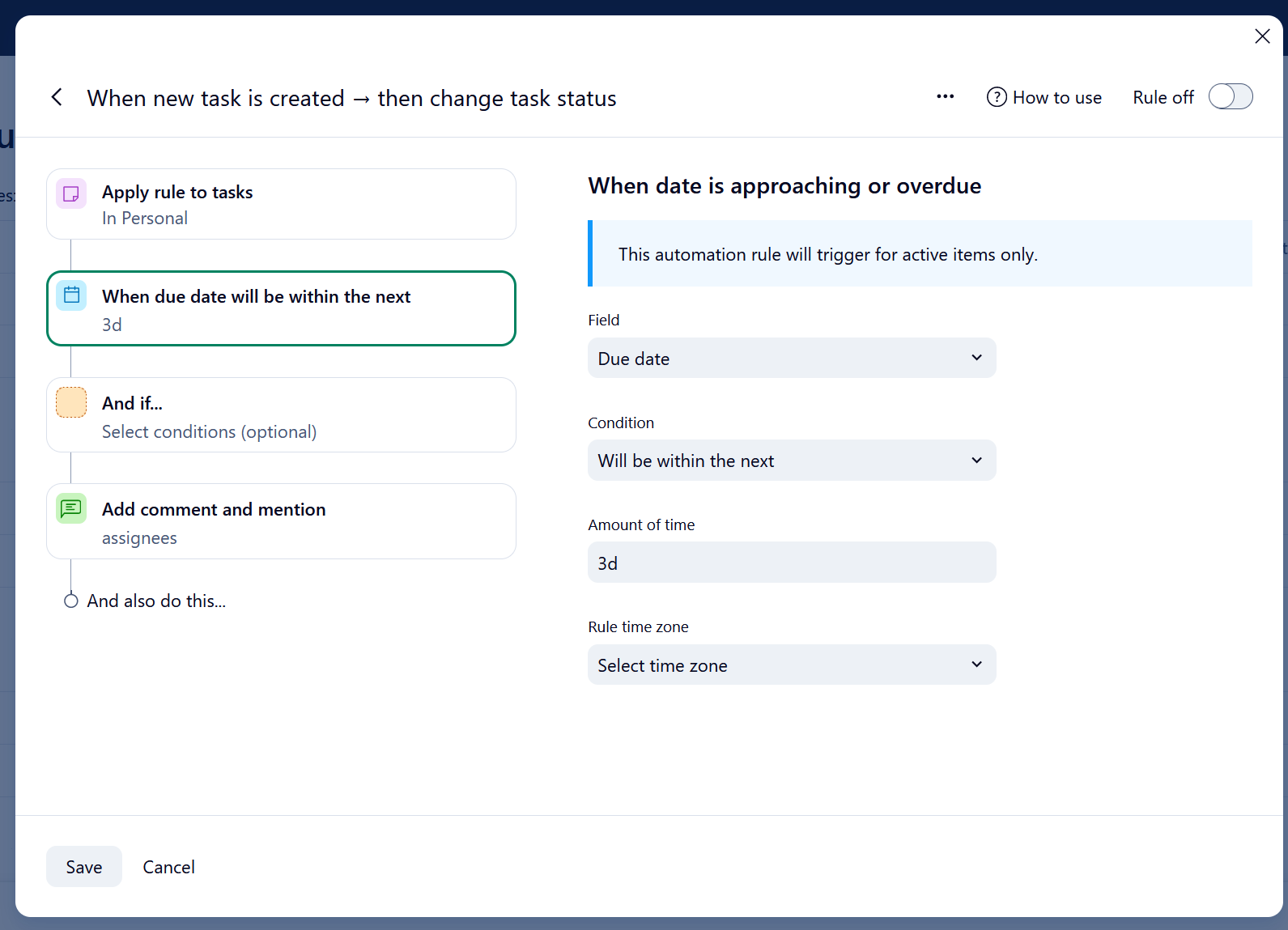 Wrike Automation Rule - Alert an Assignee X amount of days before a Task is Due