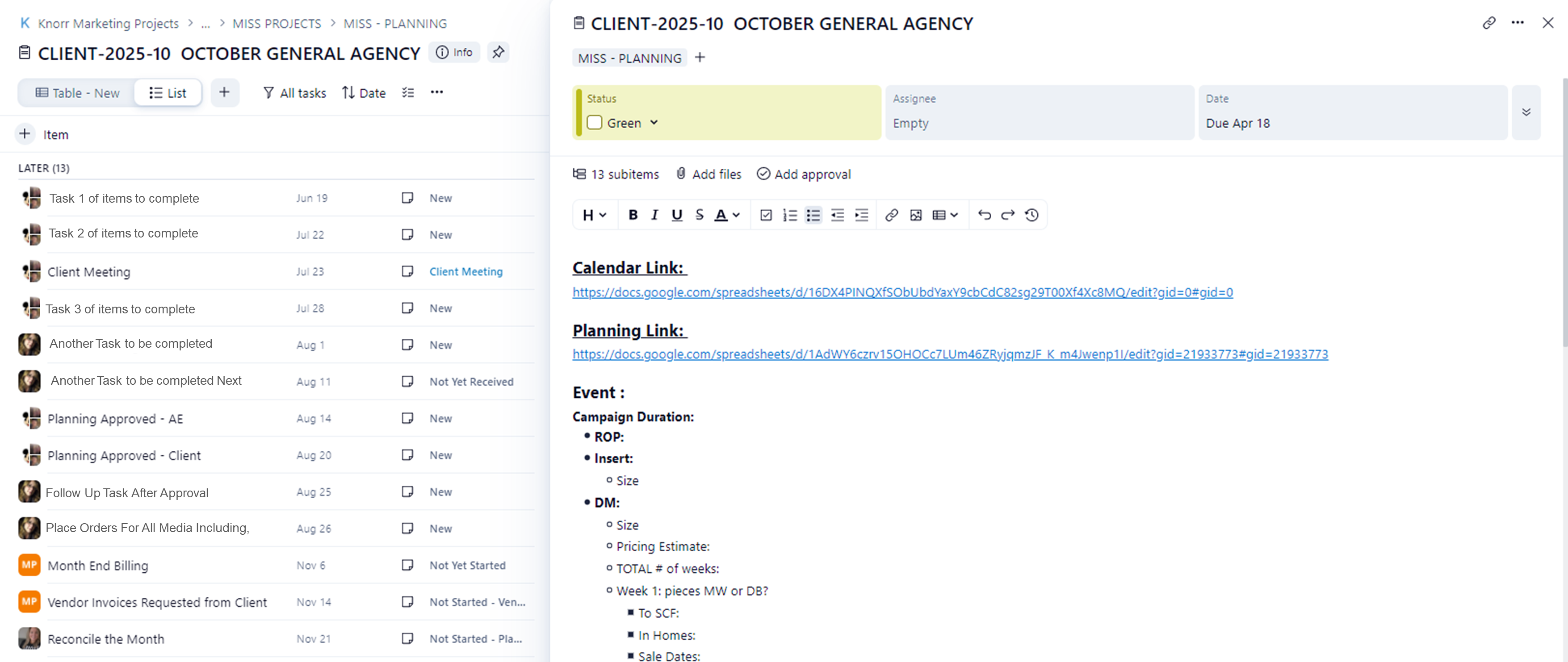 I use List View for its simplicity and showing the relevent info for projects. Task title, assigned people, due date, and status—in a compact, concise layout.