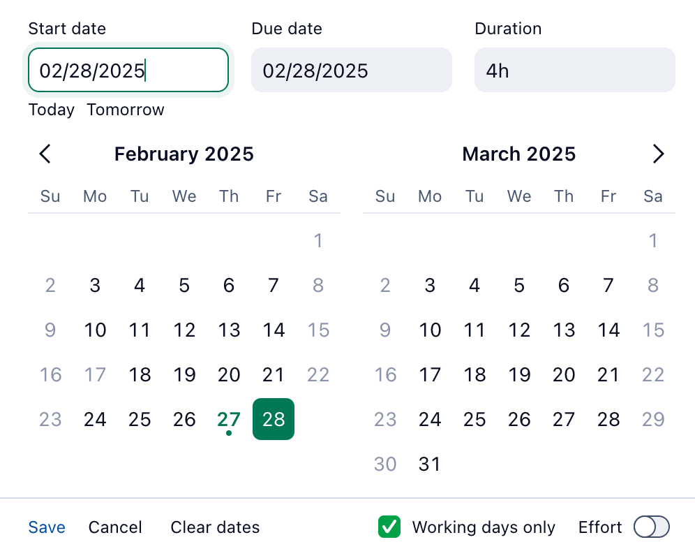 • Having 2 fields for start/due date and seeing the task duration in a small, clean, compact view