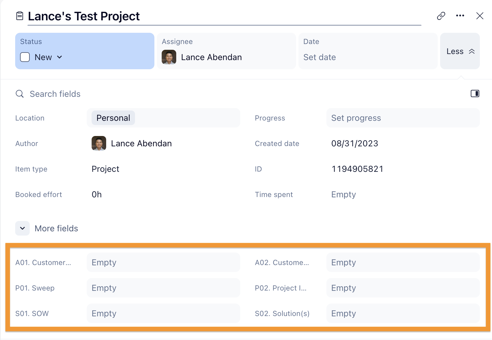 Currently we have all custom fields listed in one section (under the "More fields" dropdown) but hoping we can customize and separate sections for each custom field based on categories.