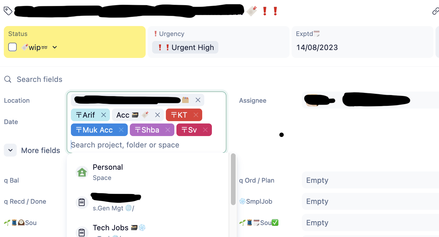 Slava Kogan Thank you for making fields view in 2 columns here. I have a suggestion here, Generally every task is multi located in 4-6 projects. In the columnar view, every time one has to click to check where the task is located, even to add or remove from a particular location, one has to click the field and the add or remove the project as required. Can this field be in one complete line instead of columnar view?