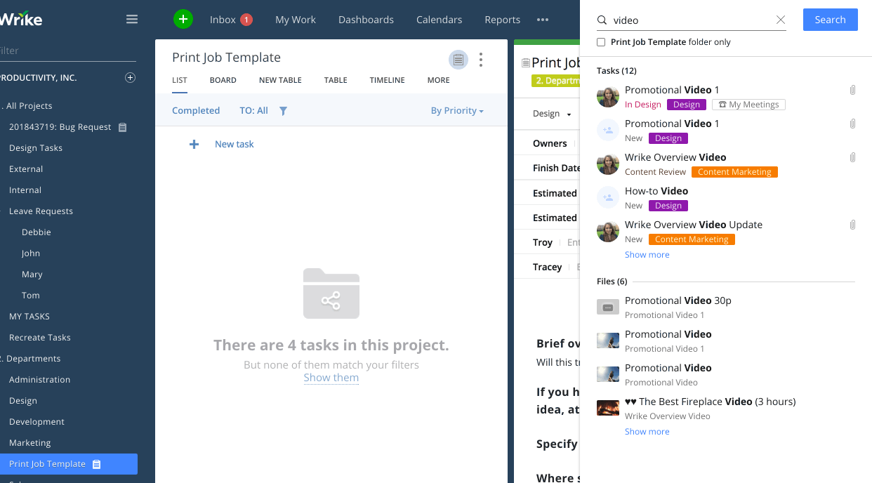 Our entire team is finding it very difficult to keep track of where documents are in Wrike. What often happens is a person posts a draft in their task, then marks that task Complete, which essentially hides it from the normal "active" view for everyone else.