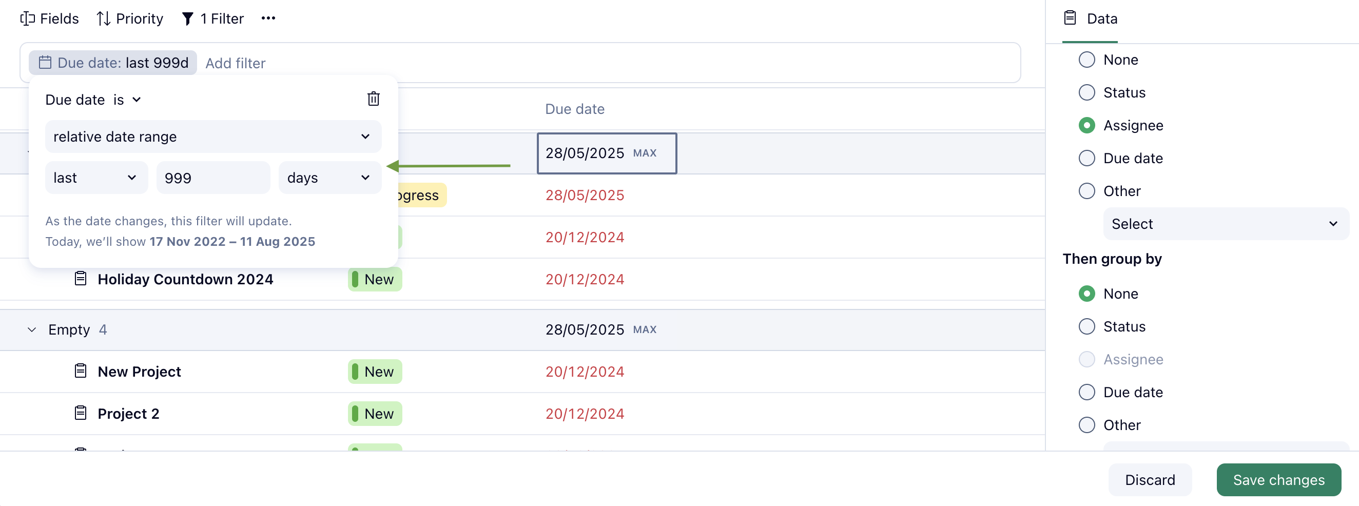 2. All Date based fields need to be made available as Dashboard parameters. For example, I should be able to create a Dashboard for "all completed projects" within my team's portfolio space and then users should be able to use a dashboard-level parameter to limit the data to projects completed only within a desired timeframe they need to see (like last 12 months, last year, this year, last quarter, etc).