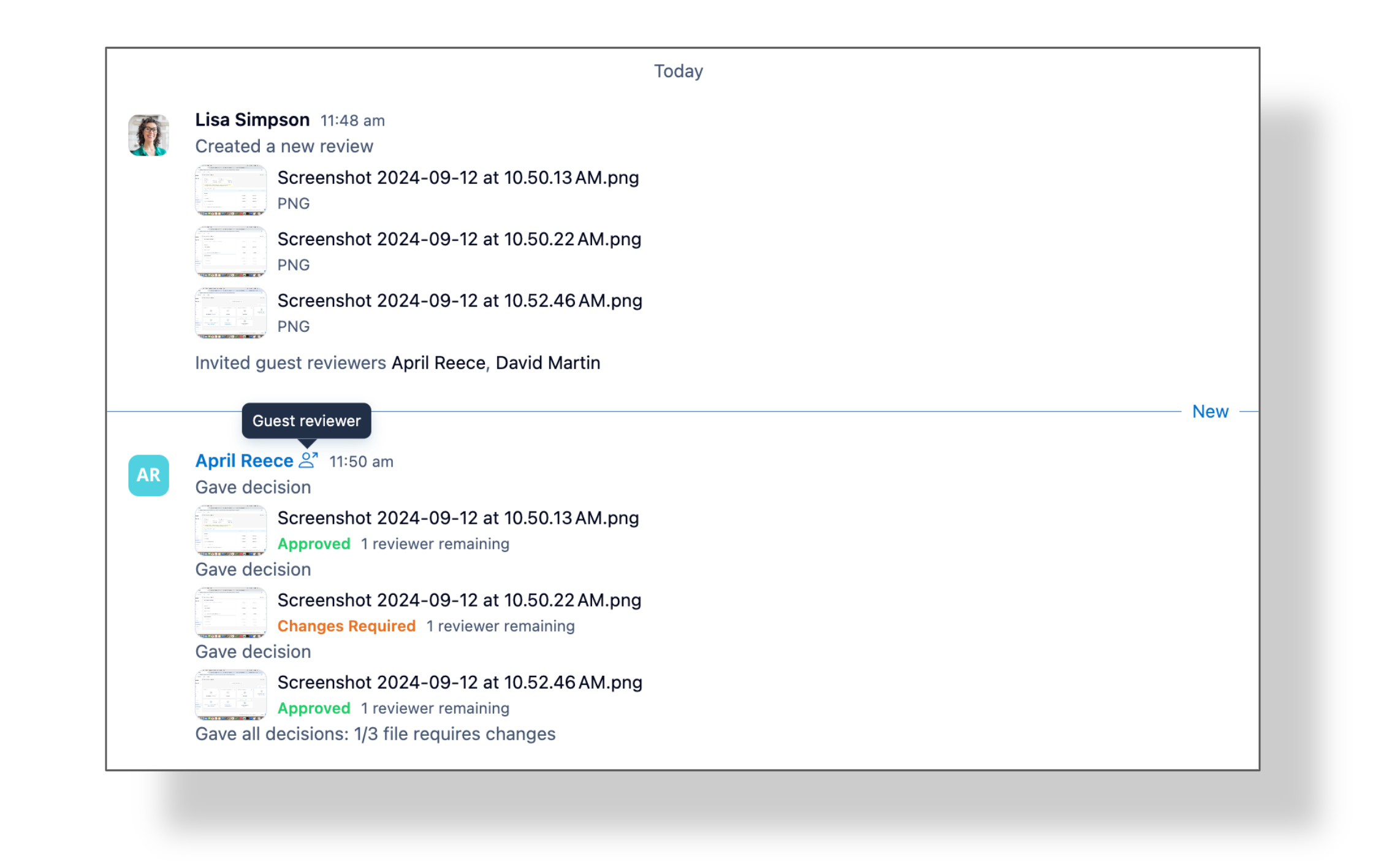 It would be helpful to log all actions related to a guest review within the respective task. Currently, if a guest reviewer accepts the invitation to review a file, the task assignee receives a Wrike inbox notification, but that is not logged within the task - so there is no visible record of that action happening.