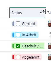 - Status seems a bit “chunky” with the UI design of the label (bold bar on the side of the checkbox) and gets cut off (defeats the purpose of displaying it if we can’t see what the status actually is)