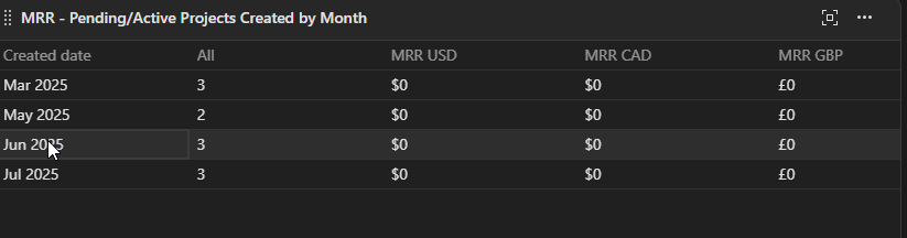 Hi - We are preparing to rollout dashboards within our team and are also looking to be able to sort table widges so that the most recent entries are at the top. In our case we have a table tracking created date to determine the number or projects created on a monthly basis: