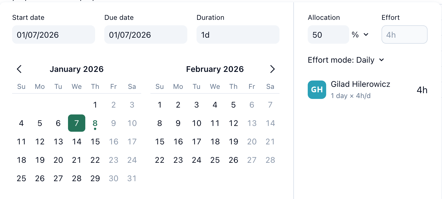 Additionally the option to define the allocation of an assignee per project can help automating the planning of an employee which is responsible for multiple projects at the same time.