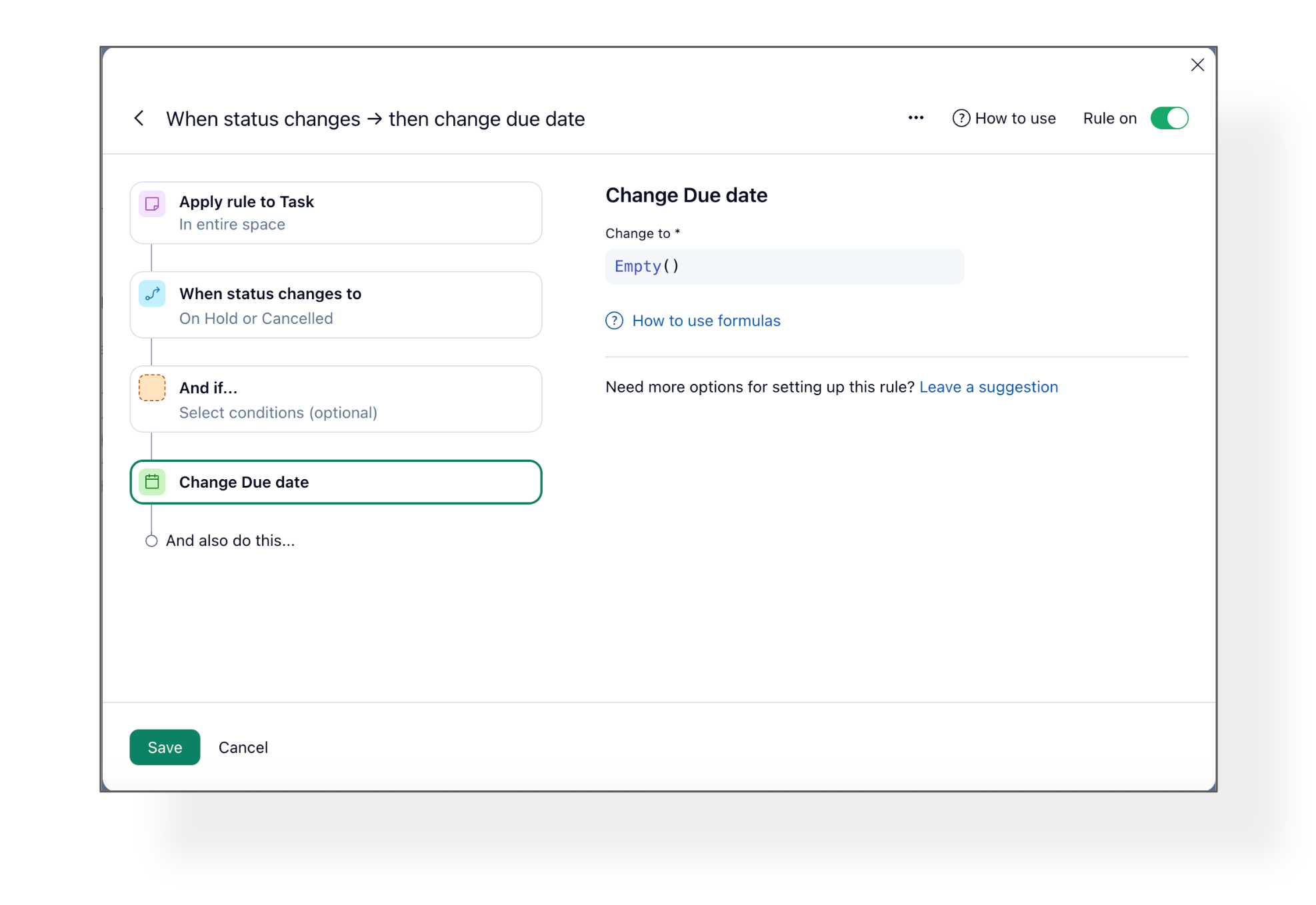 - Under Action, select Due date using the Empty() formula.