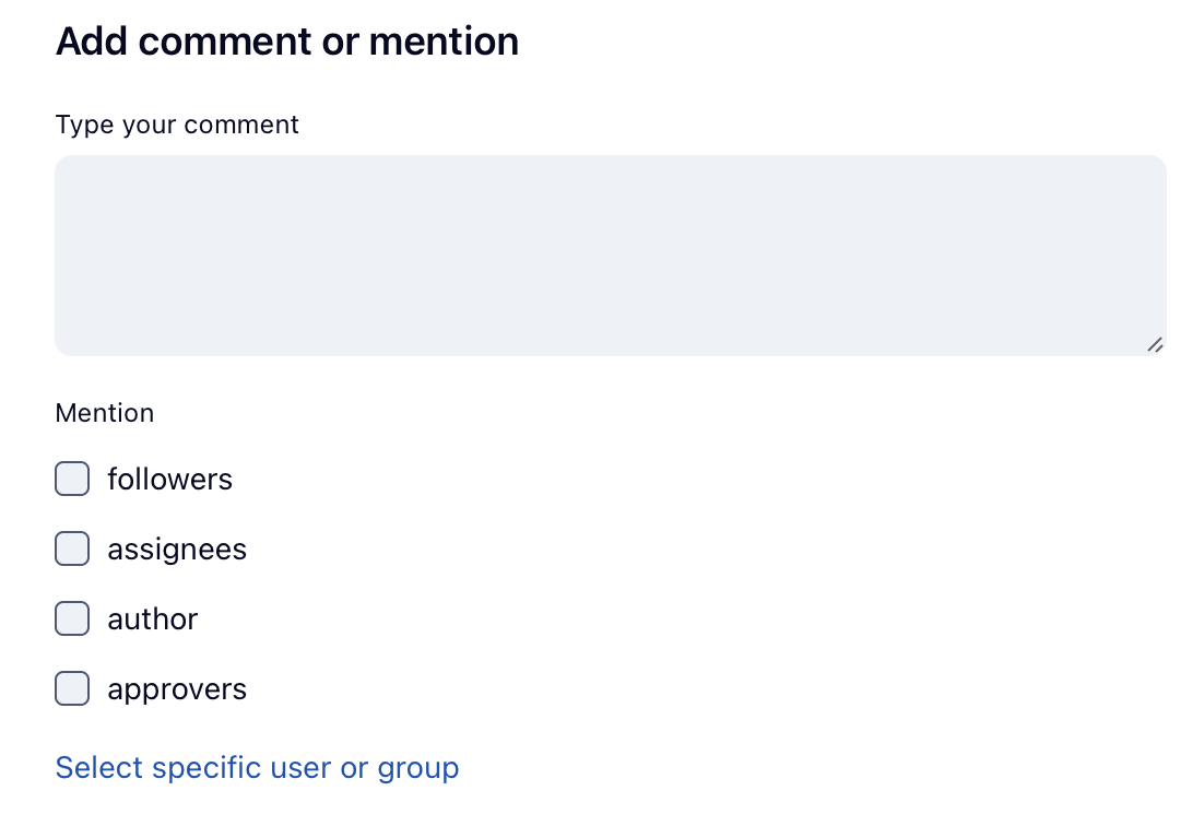 Right now, we have the following preset options in the "Add comment or mention" action of any automation rule: