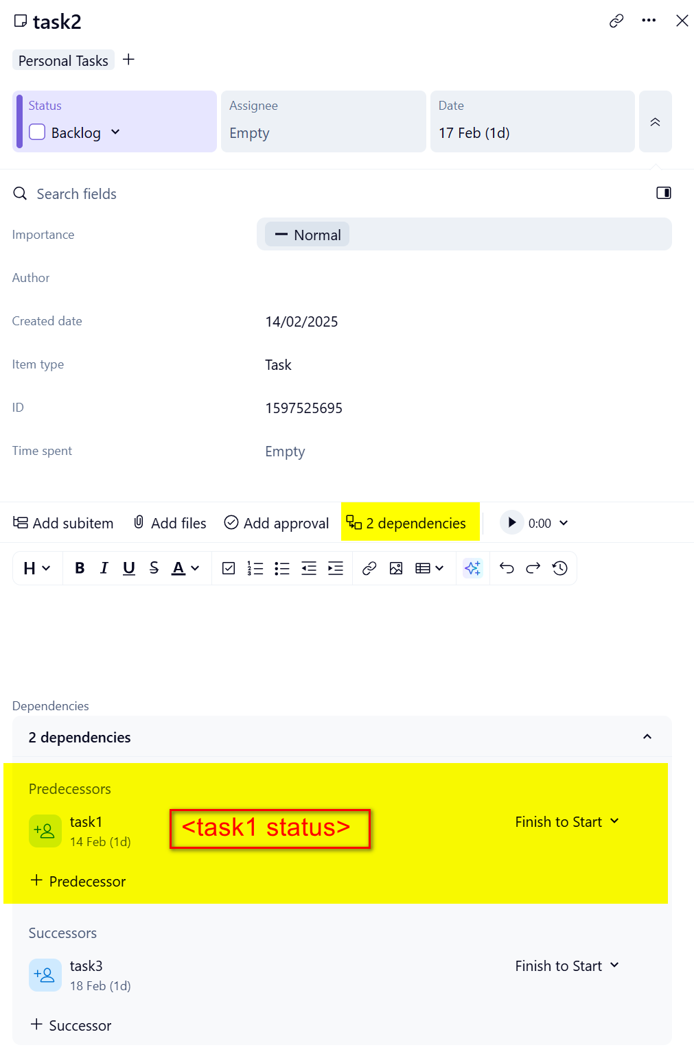 Show dependent task status when viewing dependencies within a task