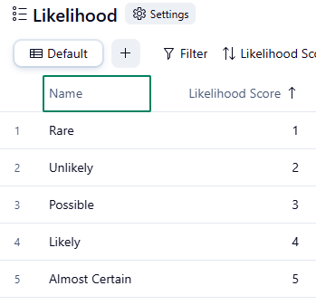 e.g. If you select Likely you get a likelihood score of 4, and if you select Moderate you get a Consequence score of 3