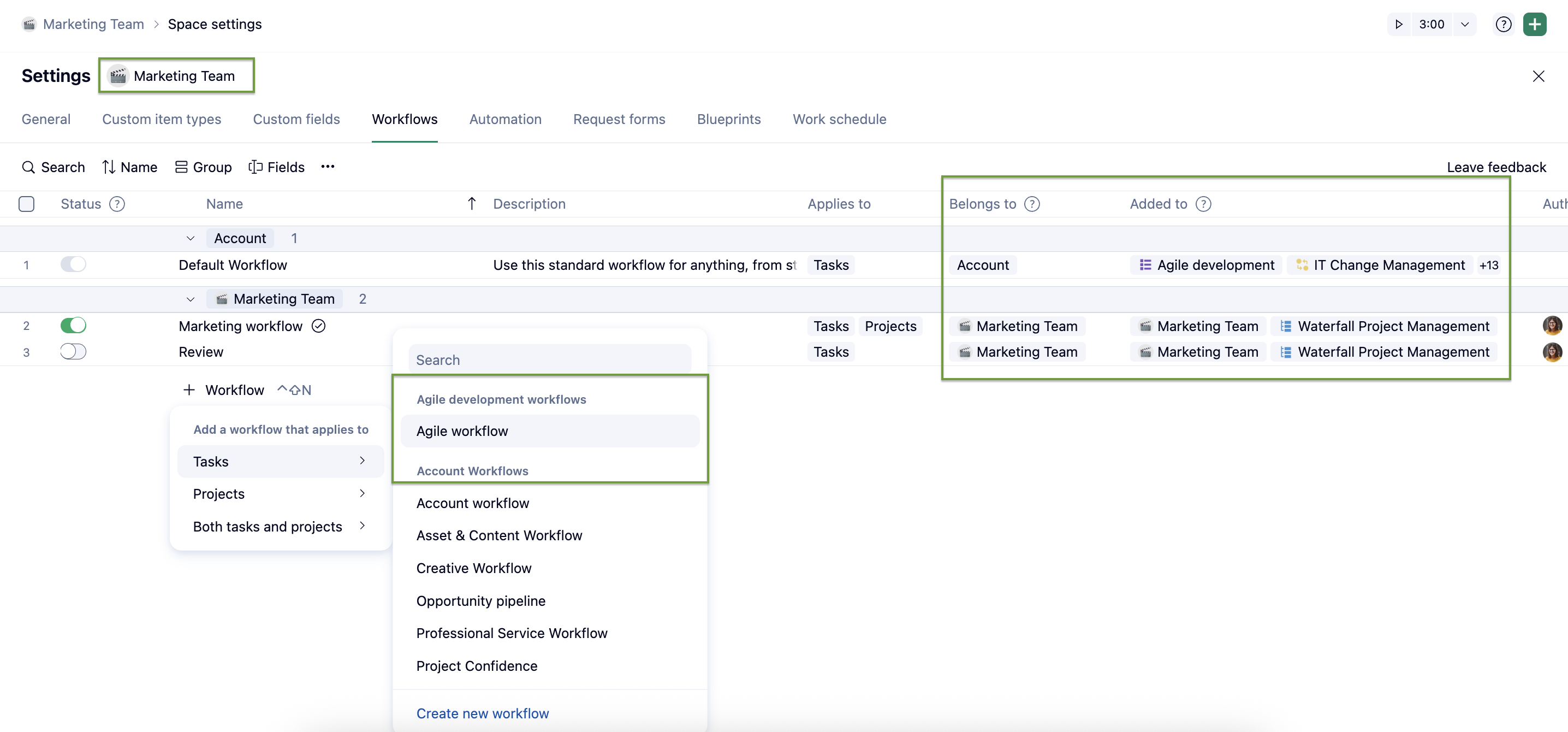 - To start, go to Space or Account settings โ Workflows and configure the Added to field.b