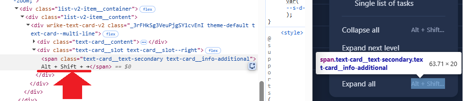 Show full shortcut (don't truncate) for Expand/Collapse subitems