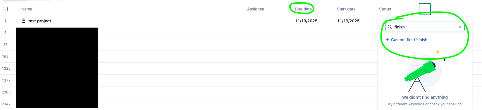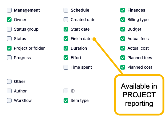 Note that across the account, Projects don't use the term "Finish date":