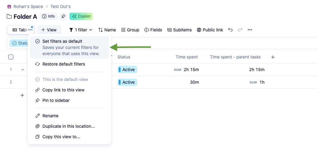 Jessica Doyle this can be done, but it might be reliant on your subscription level. When you set a filter on a view, a little blue dot should appear in the view tab. You can click on it and set it to be the default view. I think this need to be done by the person that created the item you are viewing(Project, Folder, etc.), but I am not sure on that. Additionally, if you don't want other users to change this, you need to change the Access Role settings. In the accoount management settings, under Access Roles there are option to allow or block users from changing views, either default and or custom.