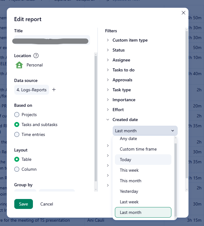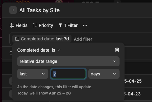Hi Giulio Marino 👋 Sorry for the delay in getting back to you. Our team is aware of the request for relative date filters in reports, but so far, there haven’t been any new updates to share. We will continue to monitor for any changes or developments and will keep the Community posted accordingly 👍