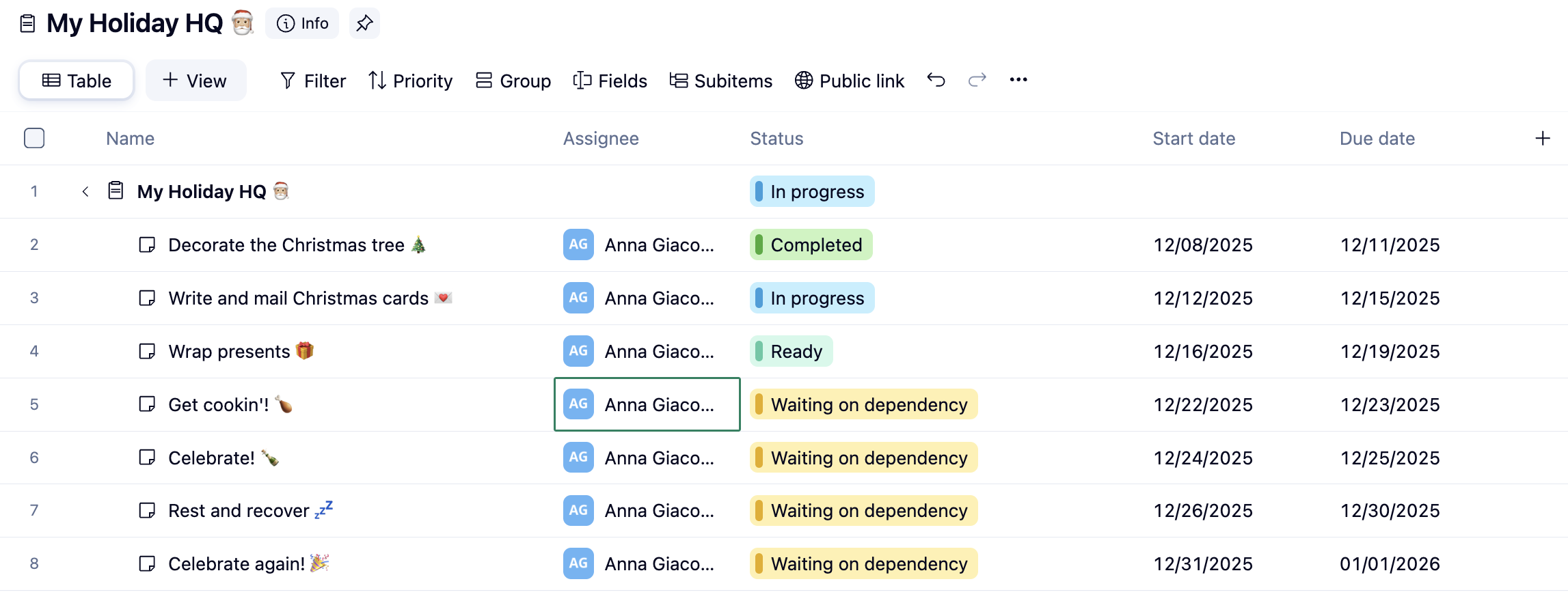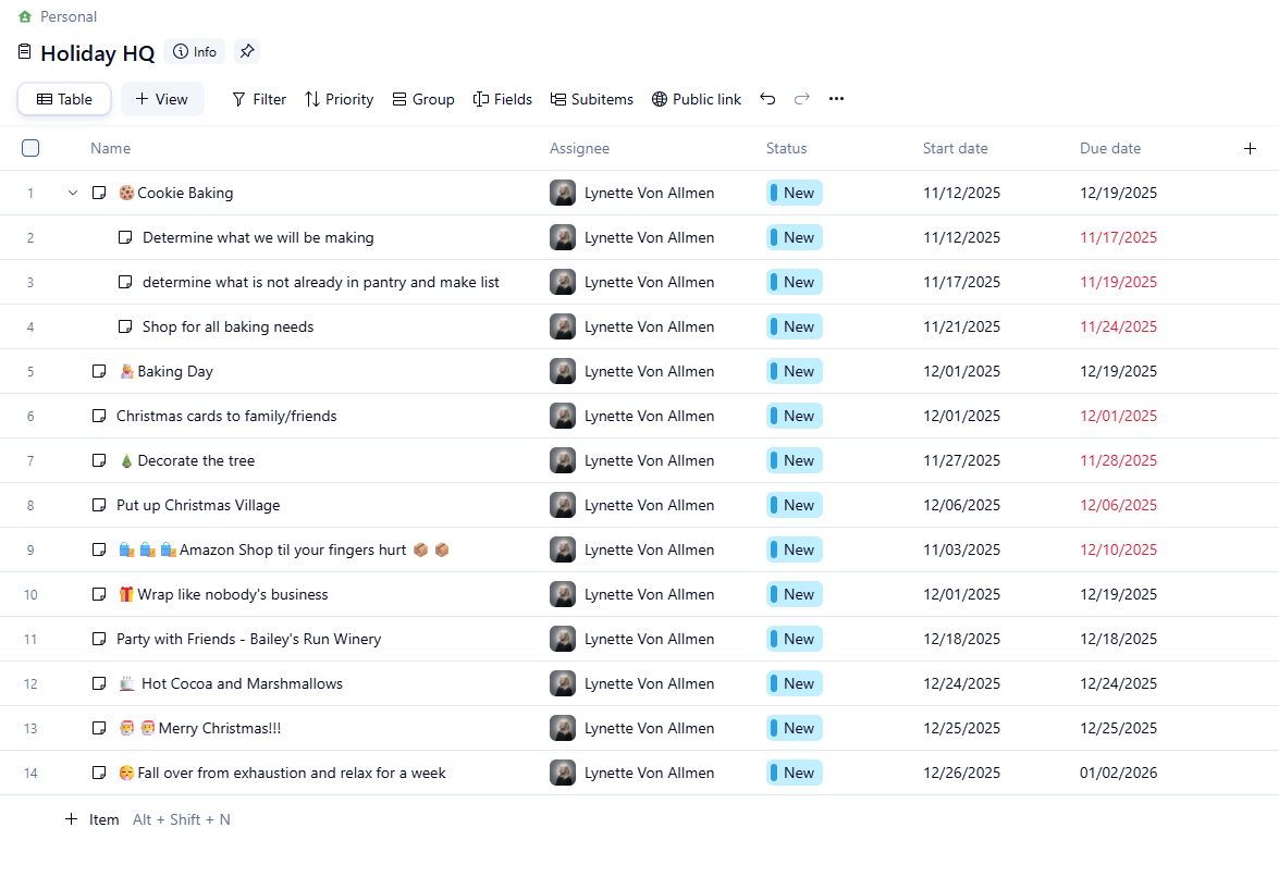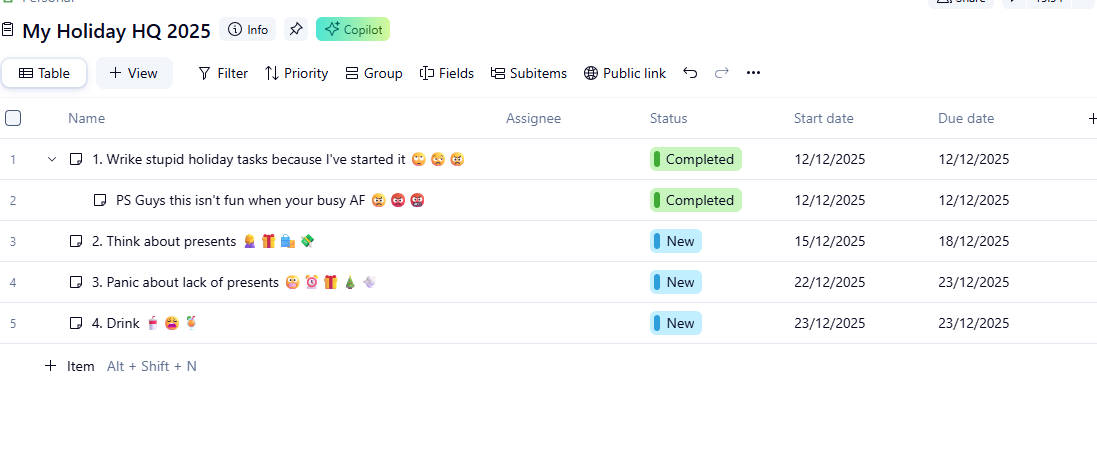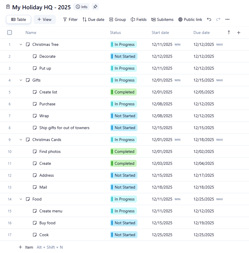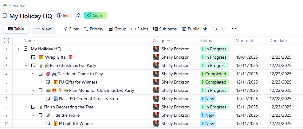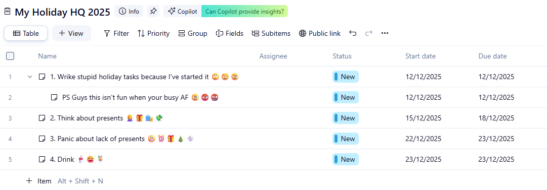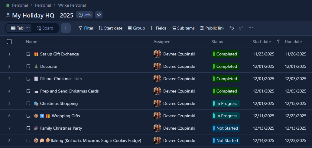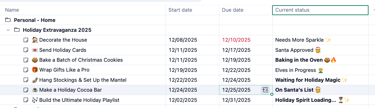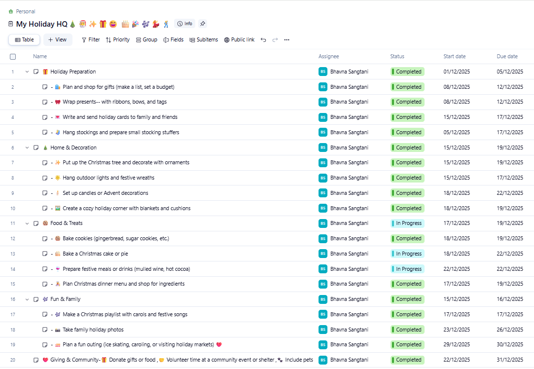 - Create a new Wrike project titled โMy Holiday HQ.โ