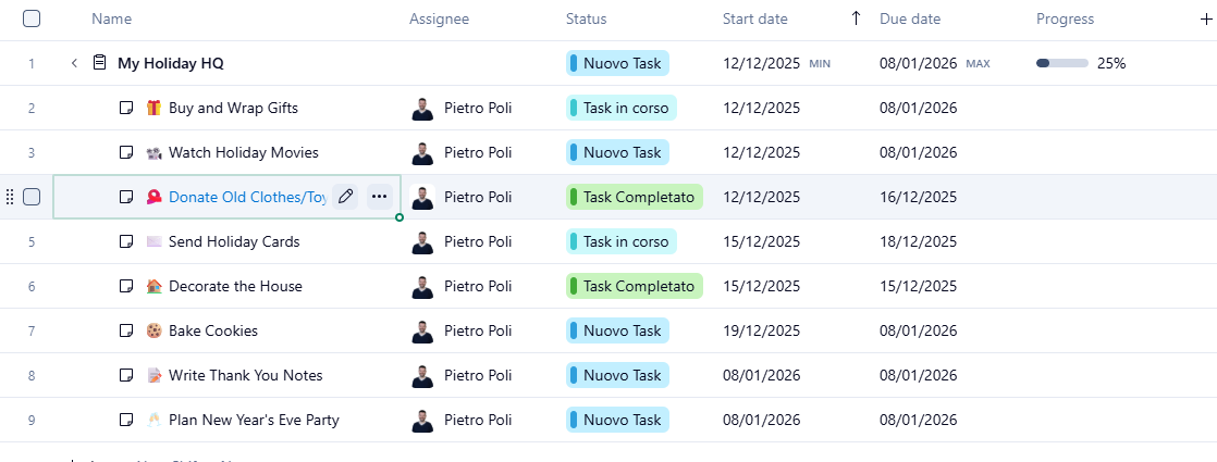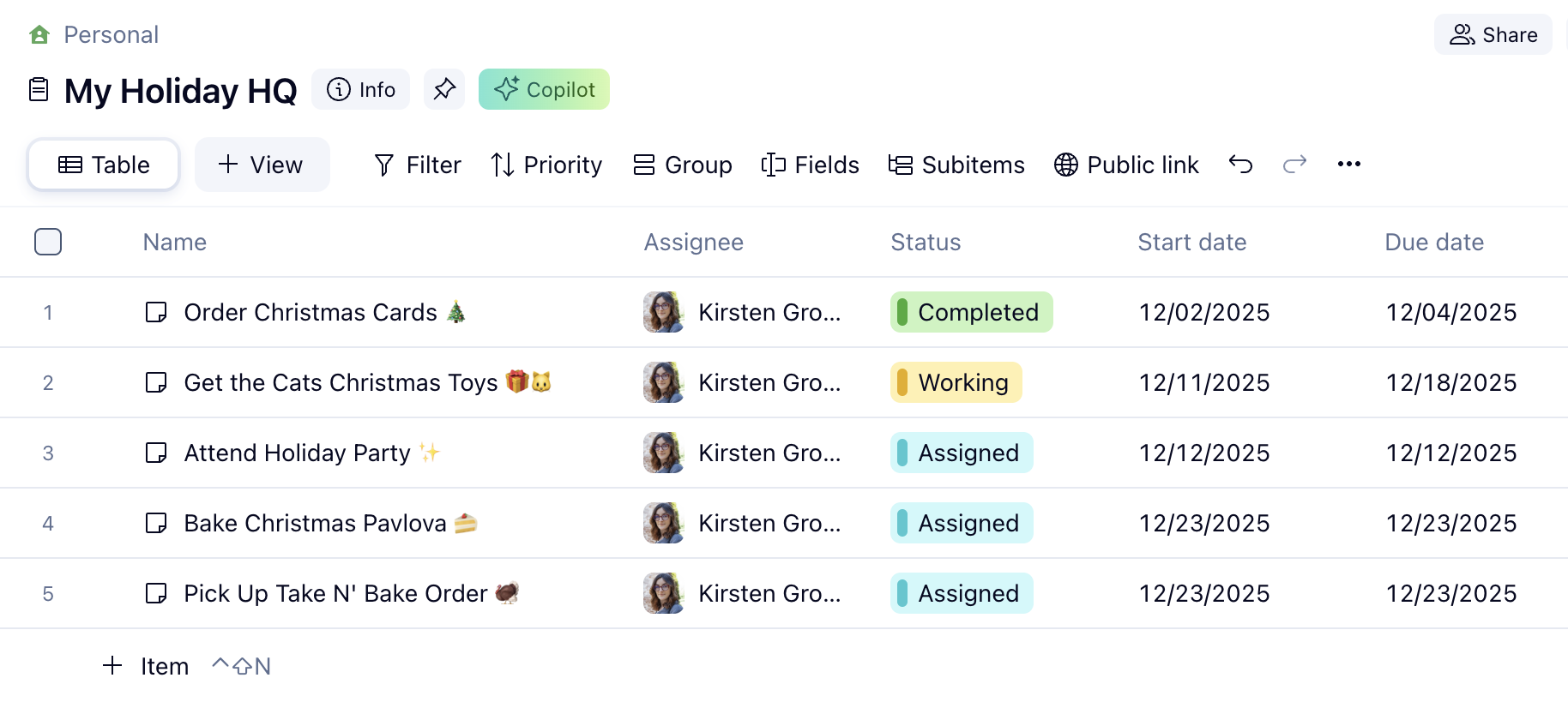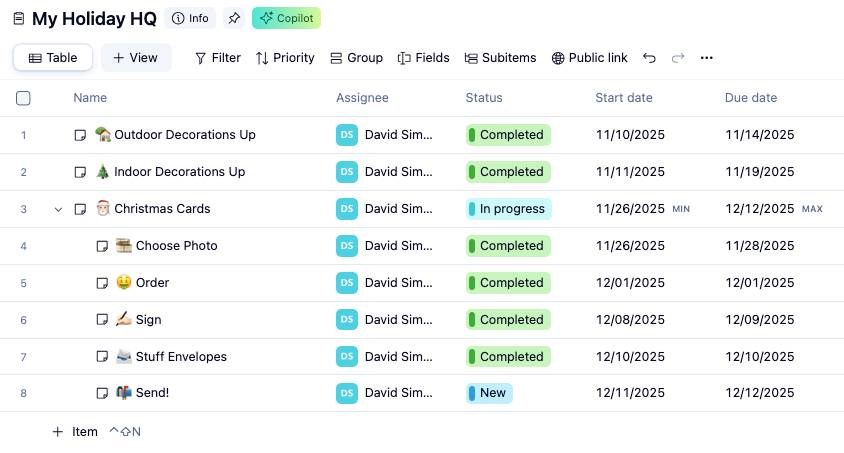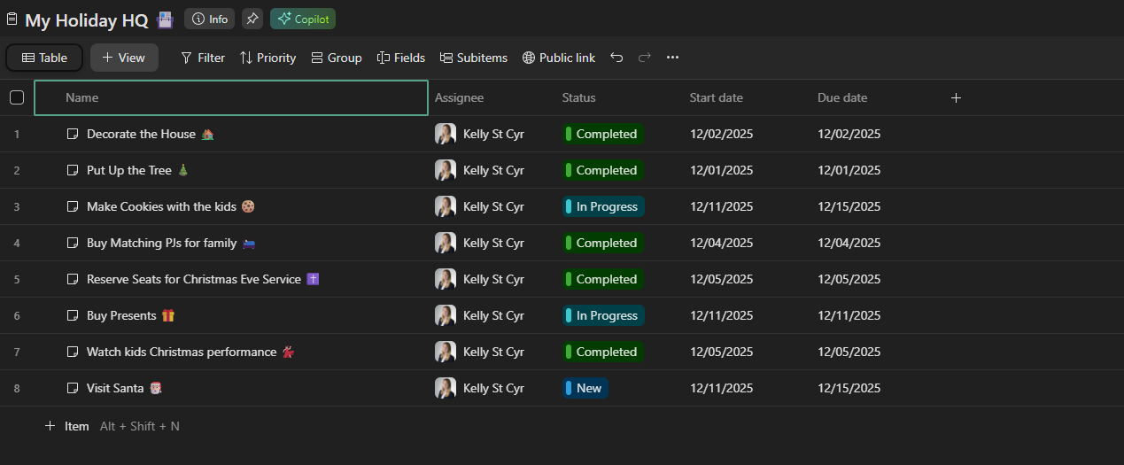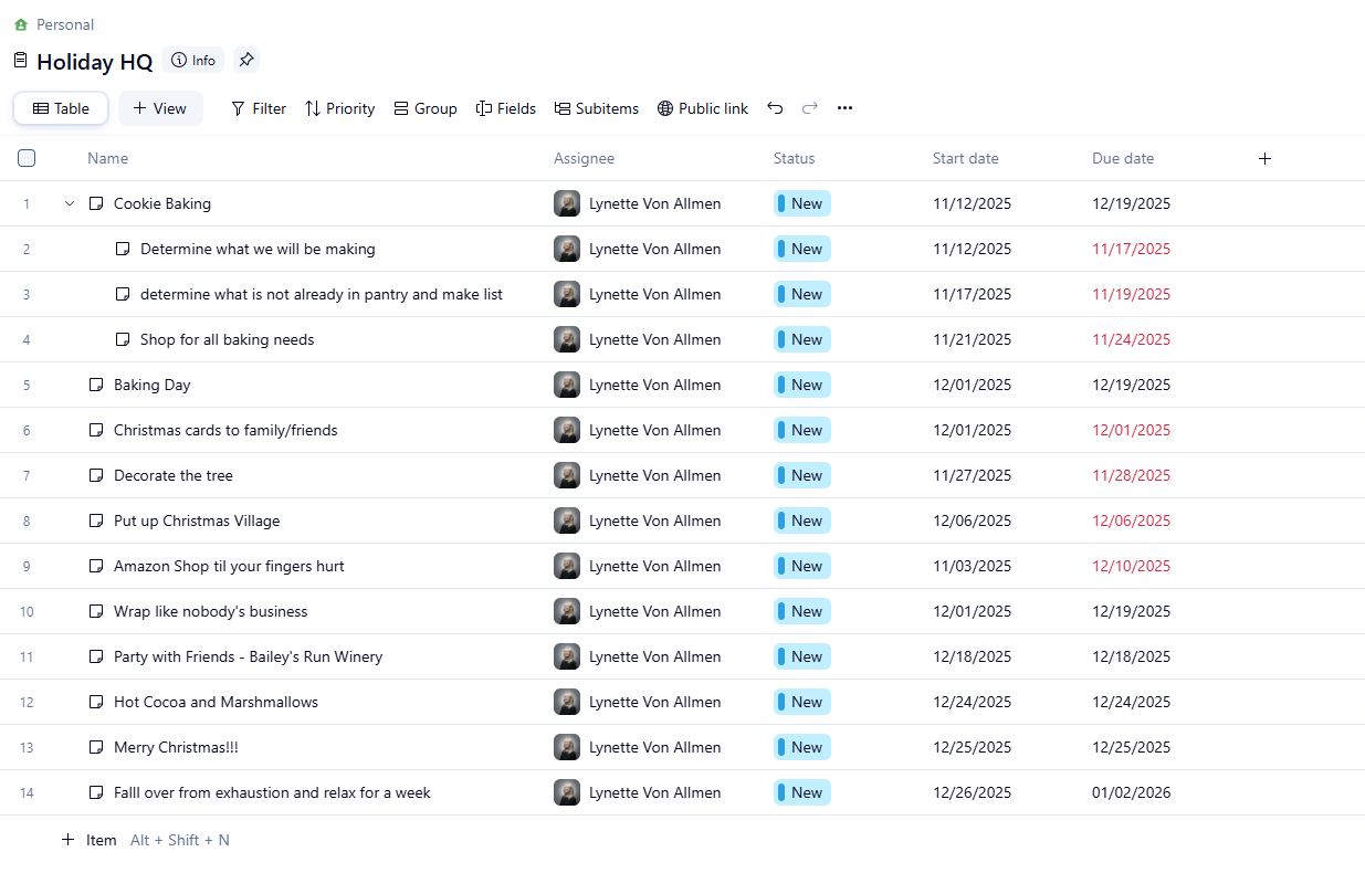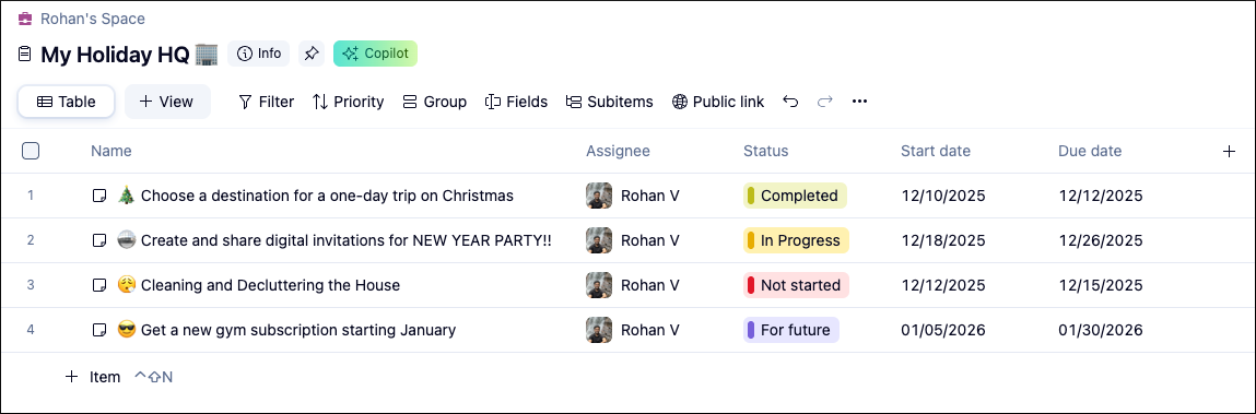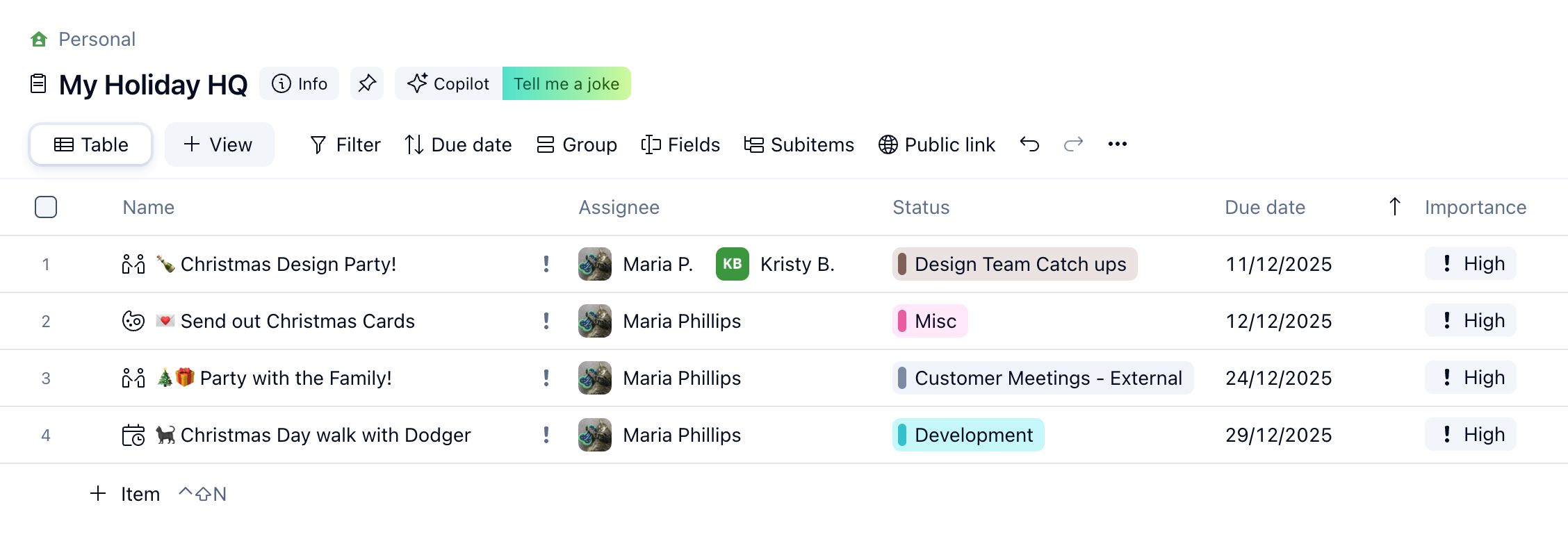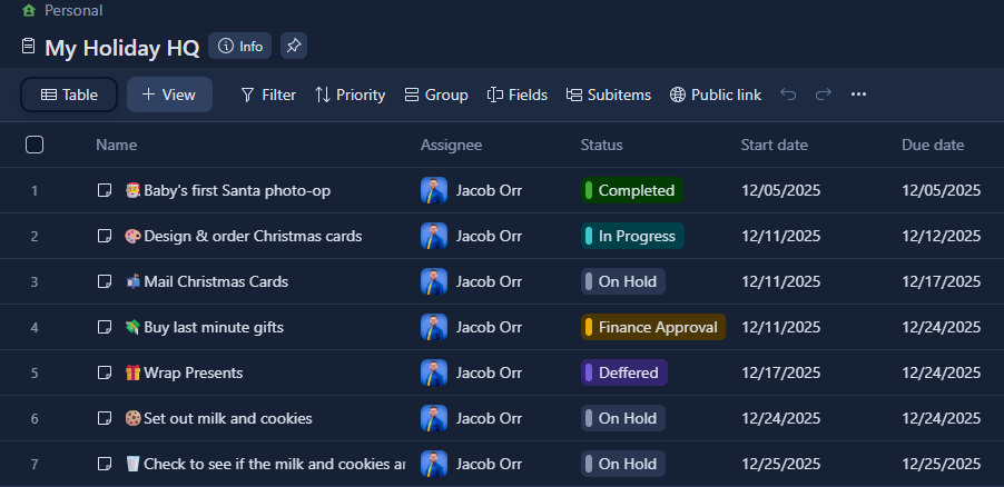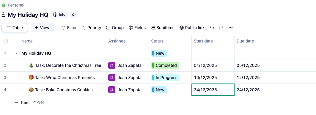 - Create a new Wrike project titled โMy Holiday HQ.โ